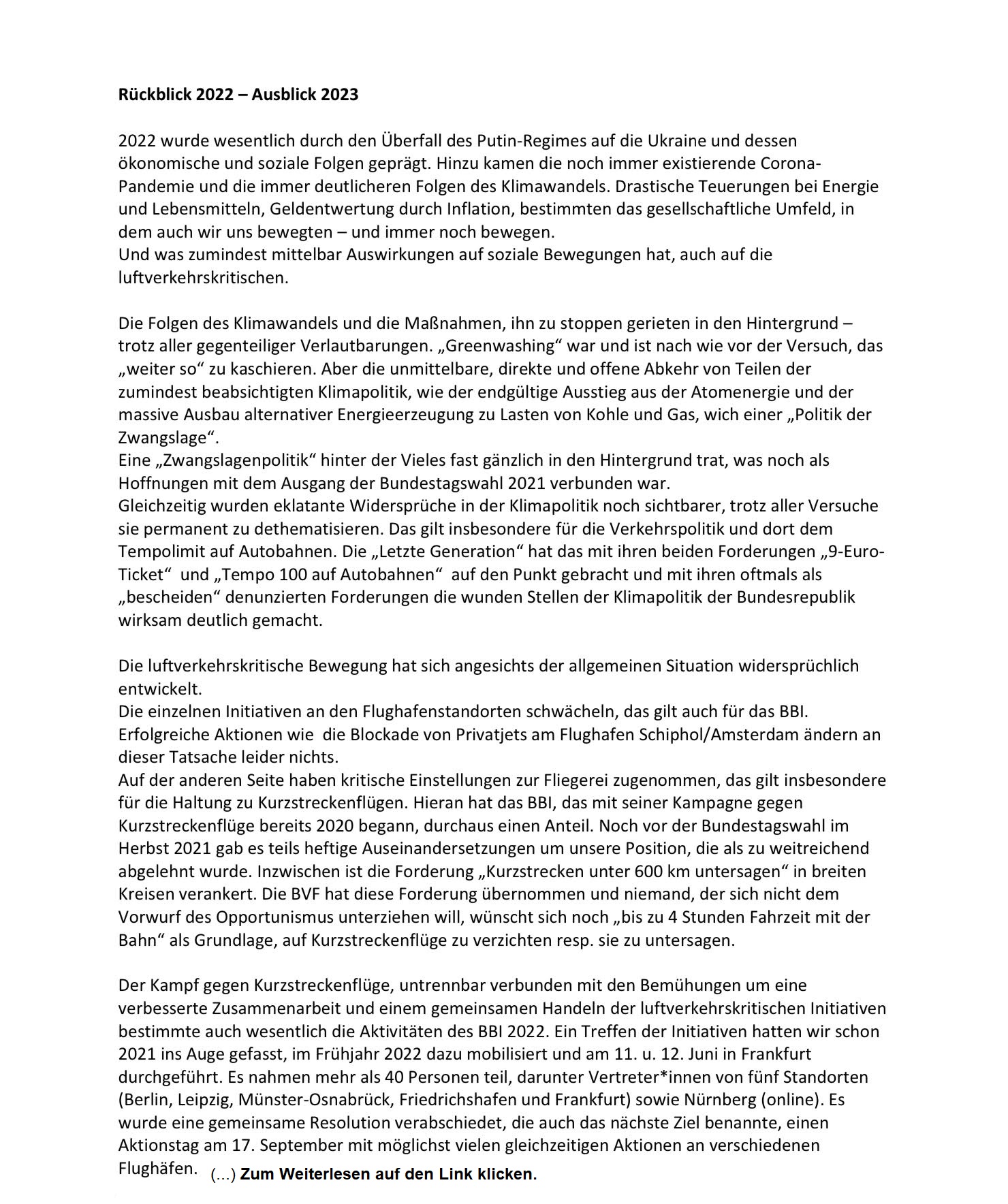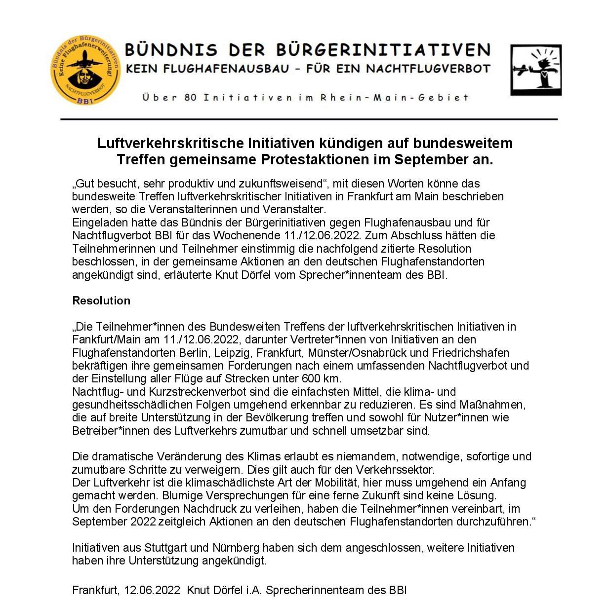 Bürgerinitiativen (BBI) ruft so gemeinsam mit 80 weiteren