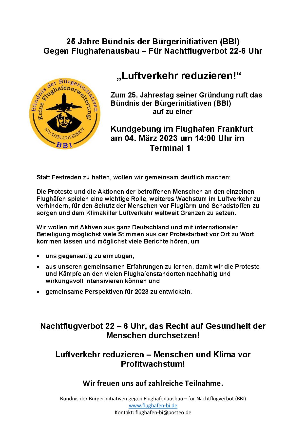 2) gegen Ausbau und Umweltbelastungen des Rhein-Main-Flughafens weiter,