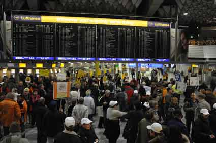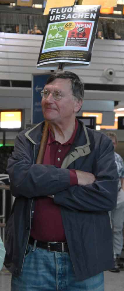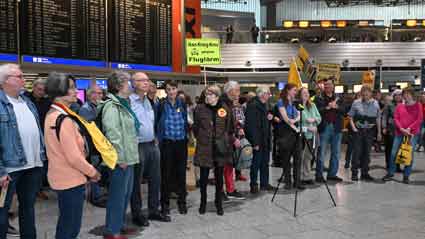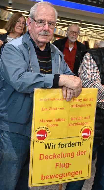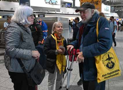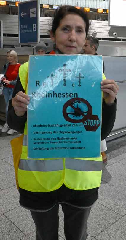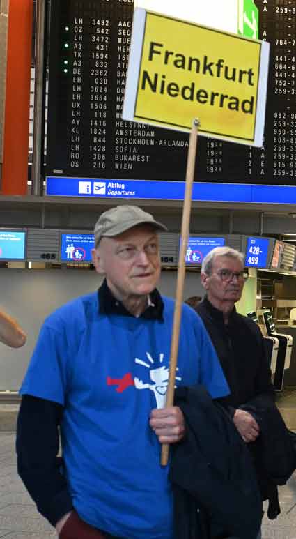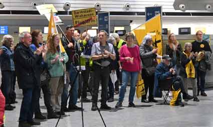 Die nunmehr 311. Montagsdemo des gegen Ausbau und Umweltbelastungen des Frankfurter Flughafens kämpfenden Bündnisses der Bürgerinitiativen (BBI) fand am 21. Oktober nach der durch Corona-bedingten Pause im Terminal 1 statt, wo seit 2011 solche Protestaktionen in der Abflughalle B stattfinden. Aktive aus vielen Kommunen im Rhein-Main-Ballungsraum nahmen unter dem Motto "13 Jahre Landebahn Nordwest" teil, wozu Knut Dörfel (Bild 4) willkommen hieß und zur Fortsetzung des Protestes aufrief. Kritisch nahm fürs BBI Ursula Pirkl (Bild 5), Bütttelborn, unter anderem das Flachstattverfahren und das Verfahren dazu unter die Lupe und verwies auf alternative Konzepte dazu. Auf die Vielzahl der Umweltbelastungen ging Karl-Heinz Peil (Bild 6), BUND-Landesverband, ein. Musikbeiträge lieferte der Frankfurter Liedermacher Steve Collins (Bild 8). Unsere Bilder zeigen Szenen von der ersten Montagsdemo nach der Corona-Pause, womit unterstrichen werden sollte, dass der Protest auch unter veränderten Rahmenbedingungen weiter geht.