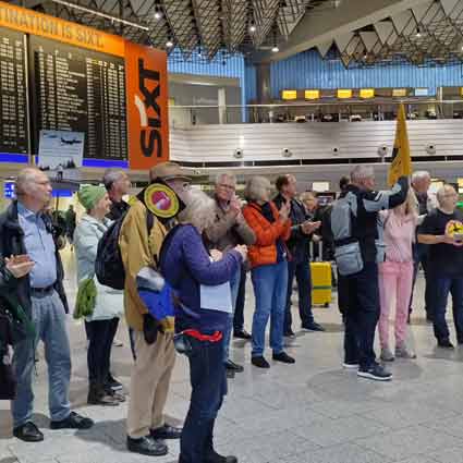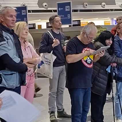 21.10.2025, Frankfurter Flughafen, Terminal 1 Flughafenprotest im Terminal 1 am 21.10.2025
