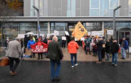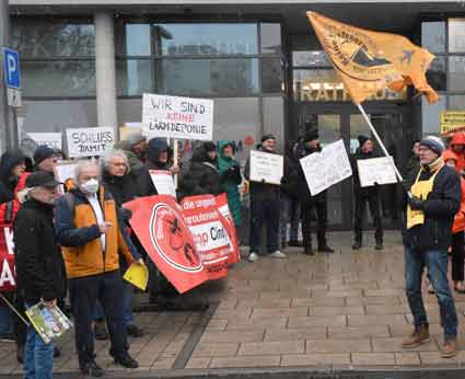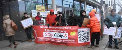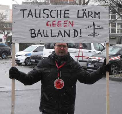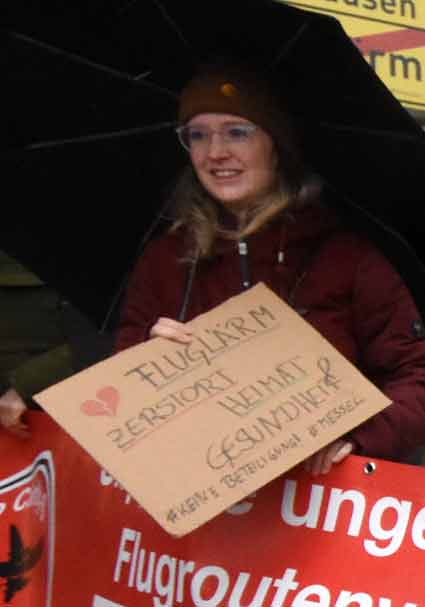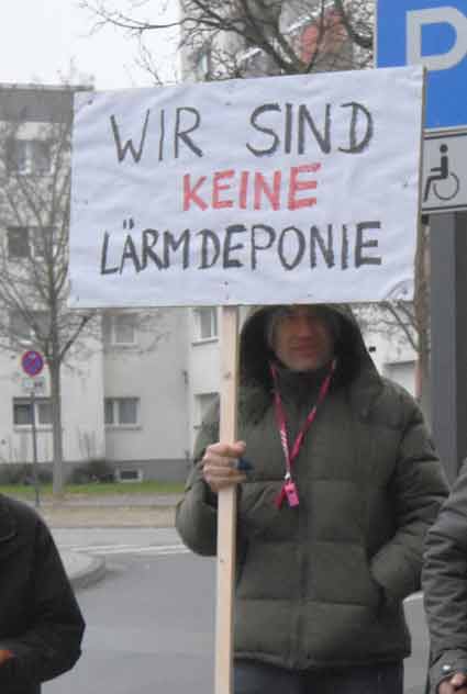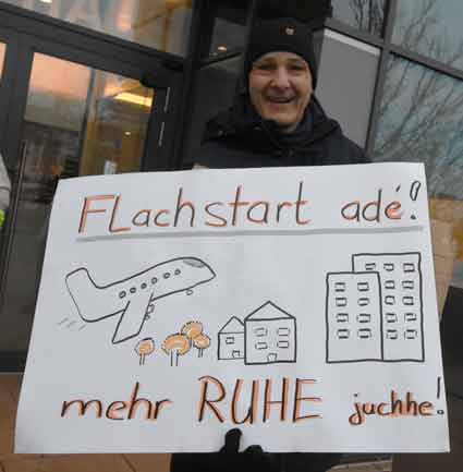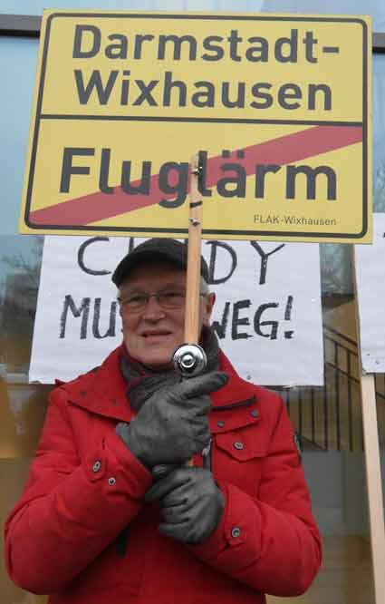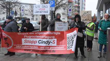 Bei Schneeregen und winterlicher Kälte protestierten am 19, November Mitglieder verschiedenster südhessischer Bürgerinitiativen vor dem Raunheimer Rathaus während einer Sitzung der Fluglärmkommission (FLK) am Rhein-Main-Flughafen. Im Mittelpunkt der winterlichen Protestaktion stand die Ablehnung neuer Flugrouten am Airport Frankfurt - wie Cindy-S - und befürchtete neue und zusätzliche Belastungen für die Nachbarschaft des Weltflughafens.