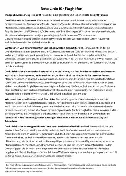 So kann und darf es nicht weitergehen! Menschen vor Profite! Der Wachstumswahn der Luftverkehrswirtschaft muss beendet werden. Menschen, Klima und Umwelt müssen absoluten Vorrang haben.
