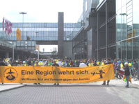 auf ihre Forderung " Kein Flughafenausbau - für ein