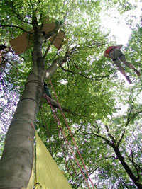 von Robin Wood, vom 15.08.-17.08.03 ein Klettercamp im Wald einzurichten.