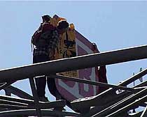 die Glaskuppel erklommen und weithin sichtbar die Werbetafel der