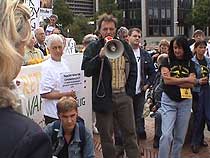 und diskutierte eine Stunde lang mit den DemonstrantInnen.