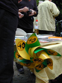 Am Infostand (hier im Hintegrund