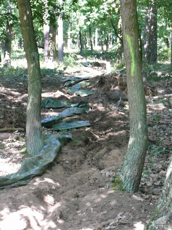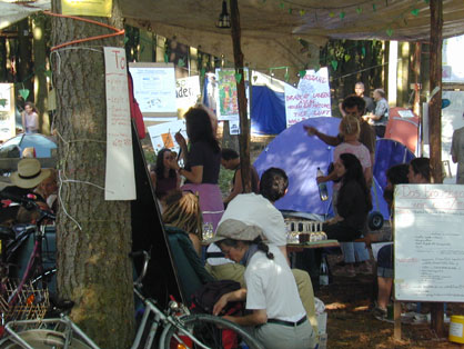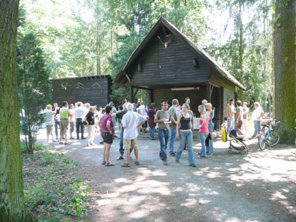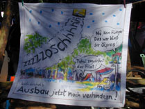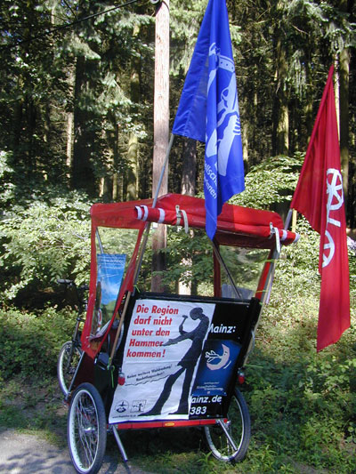 Die Bürgerinitiativen riefen für diesen Tag zu einer Fahrrad-Sternfahrt zum Waldcamp auf. Mehrere hundert Menschen kamen. Dabei wurden auch die sogenannten "Vorarbeiten" der Fraport AG zum Flughafenausbau inspiziert. So liegen lange Plastikplanen im Wald, um Amphibien zu fangen. Fledermaushöhlen werden versiegelt, um die Tiere zu vertreiben. Ob sie es schaffen werden, in anderen Waldbezirken Unterschlupf zu finden, ist fraglich, schließlich sind die Baumhöhlen von dort lebenden Fledermauspopulationen belegt. Das sind bereits Maßnahmen des Ausbaus, die irreversibel in das Gebiet eingreifen.