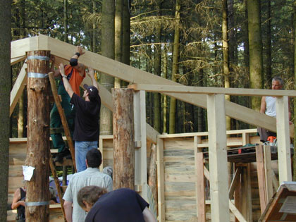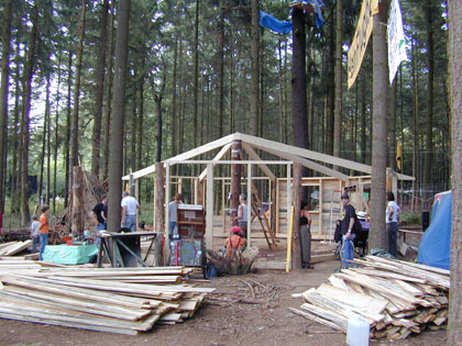 Sonntag, 17. August 2008 Fortschritte Am 03. August wurde mit dem Bau der BI-Hütte begonnen - und so sieht sie zwei Wochen später aus.