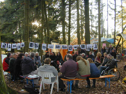 Anläßlich des Jahrestages der Hüttendorfräumung, das 1981 durch Polizeigewalt geräumt wurde, gab es Vorträge zu verschiedenen Aspekten der Startbahnbewegung und der heutigen Situation. Kritisch beleuchtet wurde das Mediationsverfahren. Auch über die Schüsse auf zwei Polizisten im Jahr 1987 und die anschließendee Represssionwelle wurde diskutiert.