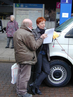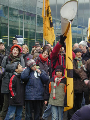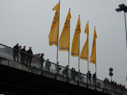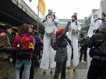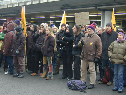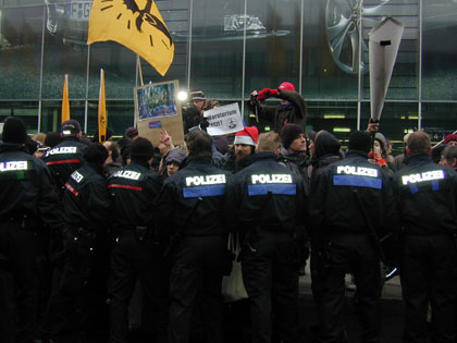 Die DemonstrantInnen wurden ständig von Polizei und Fraport-Angestellten beobachetet und abgefilmt. |