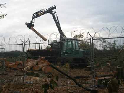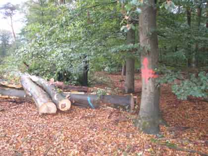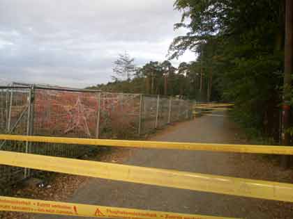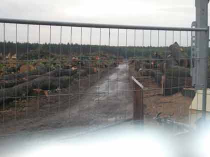Hier stand mal Wald!!! Jetzt sieht man im Hintergrund bereits den Flughafen. Er rückt immer näher an die umliegenden Ortschaften ran, der Lärm wird immer mehr und Wald, der dringend für das regionale und globale Klima gebraucht wird, fällt den Profitinteressen von Lufthansa und Fraport zum Opfer. |
