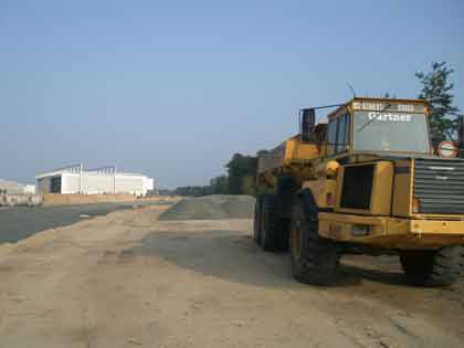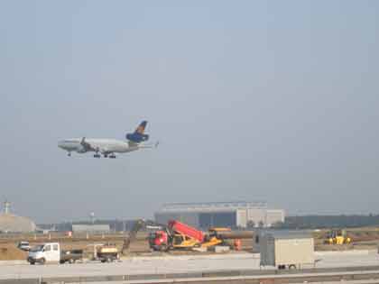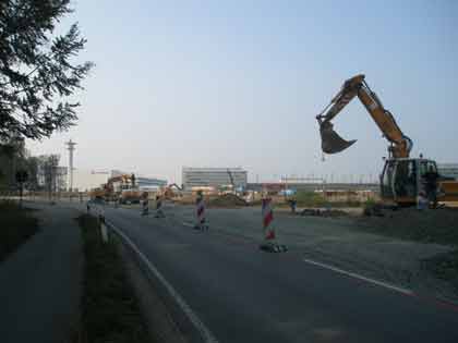 Ausbau im Süden, im Hintergrund: die A-380-Halle |