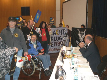 Protest der Bürgerinitiativen beim Konvent des Forums Flughafen und Region