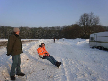 ..... den kennen wir doch: Sascha Friebe aus Walldorf macht es sich trotz Minusgraden auf dem Campingstuhl gemütlich und unterstützt den Widerstand vor Ort |