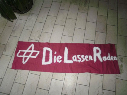 Hier können keine Bilder von Aktionen auf der Abholzfläche gezeigt werden, da das Bürgermeisteramt angekündigt hat, alle zugänglichen Fotos auf Gesetzesverstösse hin auszuwerten.