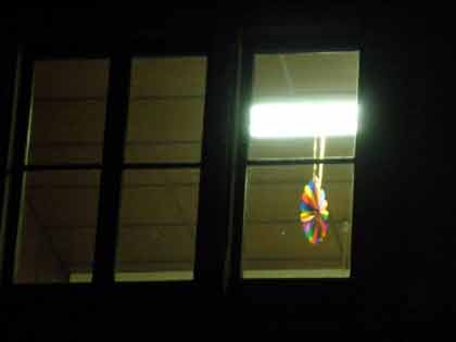 Es ist nach 21 Uhr am dritten Prozesstag gegen Cecile Lecomte. Im Frankfurter Gerichtszentrum gehen die letzten Lichter aus. Nur der Schwurgerichtssaal 146 ist noch hell erleuchtet. Gut von unten zu erkennen: Eine Kindergeburtstags- Papiersonne. (Dazu später mehr) Dann ist auch dort Feierabend, die BFE-Eliteeinheit rückt ab, ein Auto mit Zivilpolizisten kurvt noch ein paar mal um die Ecke.