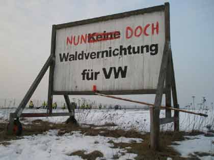 Seit etwa 130 Tagen protestieren EinwohnerInnen der Nord-Vororte Braunschweigs jeden Tag mit dem 16 Uhr-Spaziergang gegen den geplanten Ausbau des Flughafens. Dabei wird auch regelmässig das Rodungsgebiet begangen und geprüft, ob die Baumassnahmen gesetzeskonform verlaufen.