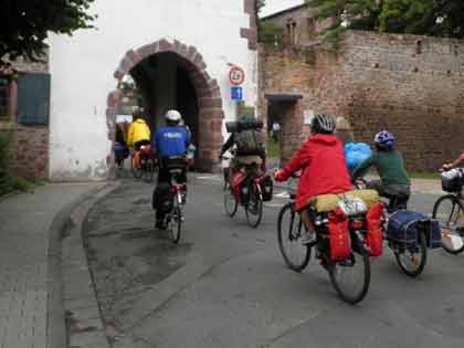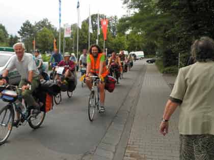 Um 16 Uhr war Aufbruch. Auch die sportliche Polizeieskorte im Radfahrerdress war wieder da. "Hoffentlich gibt`s nicht schon wieder Regen" meinte einer der Teilnehmer im Hinblick auf die letzten Etappenkilometer nach Seligenstadt .