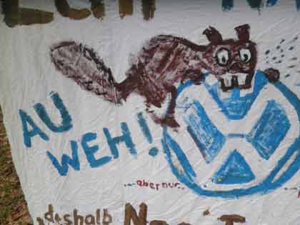 Dabei ist die Finanzierung des Ausbaus keineswegs sicher gestellt. Unzulässige Fördergeldanträge über Briefkastenfirmen und Nachlässigkeiten bei der Einhaltung von EU-Umweltschutzstandards erschweren die ohnehin fragwürdige öffentliche Subventionierung. Diese käme vor allem dem VW-Konzern als Hauptnutzer zu Gute sowie der Stadtverwaltung Braunschweig als wichtigstem Träger des defizitären Flughafens. Da wundert es auch nicht, daß das Bürgermeisteramt für eine juristische Kampagne gegen den Protest-Frontmann Peter Rosenbaum und eine vorgezogene, semi-legale Sperrung der Grasseler Straße bei Waggum verantwortlich zeichnet. Und dies alles nur, um dem anhaltenden Protest – inzwischen 400 Bauplatz Spaziergänge – zu begegnen.