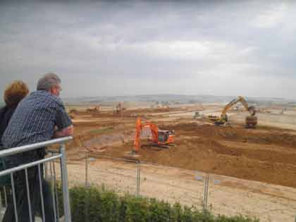So richtig begeistert scheint der Kasselaner, der mir den Weg weist, von dem Flughafenprojekt nicht zu sein: " Schauen Sie sich das nur mal an. Mitten in einer Landschaft, wo der Hund begraben liegt, stossen Sie auf eine Baustelle wo der Bär tobt. Laster um Laster fährt im Kreis herum ,um Erde aufzunehmen - und wieder abzukippen. Die versetzen regelrecht Berge- ohne Sinn !"