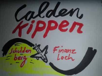 Den Abgang von Roland Koch hat das Projekt ohne grosse Blessuren überstanden. Entstanden war es 1999 auf der Basis einer Bedarfsprognose der damaligen Flughafen AG Frankfurt, welche sich als Fraport 2009 von ihren alten optimistischen Berechnungen (1,5 Millionen Passagiere/Jahr) distanzierte: Nach dem Ausstieg aus "Frankfurt-Hahn" wolle man sich auf ein ähnliches unternehmerische Risiko in Calden nicht einlassen. Gleichwohl ist die Fraport -wohl auf Druck der Landesregierung- seit 2001 kontinuierlich über einen Beratervertrag mit dem ausgeliehenen Manager Jörg Ries in Calden präsent. Vorsitzender des Aufsichtsrats ist weiterhin der hessische Finanz- und Schuldenminister, nun in Person von Thomas Schäfer. Der lieferte die Durchhalteparolen für die Wichtigkeit des Projekts bei der Spatenstichfeier -einem traurigen Plagiat des 8.5.2009 in Frankfurt- am 10.3.dieses Jahres, erst kürzlich gefolgt von einem Scheck über 114 Millionen Euro seitens Verkehrsminister Dieter Posch.