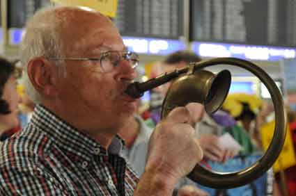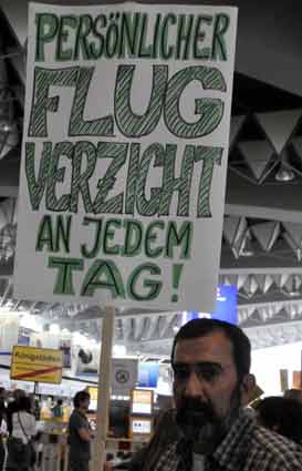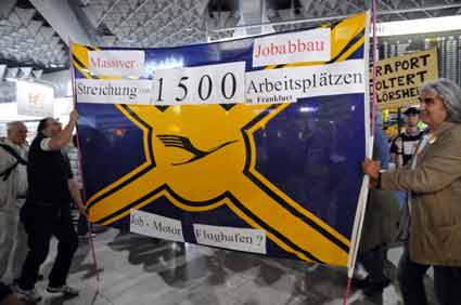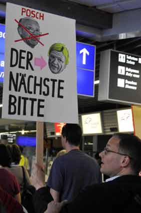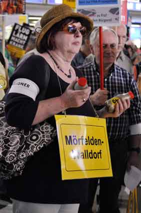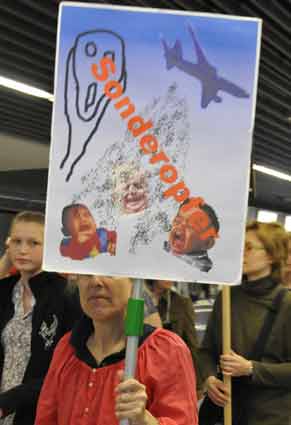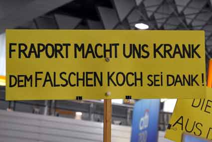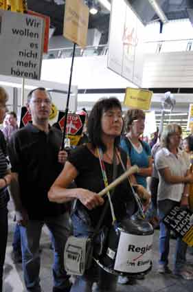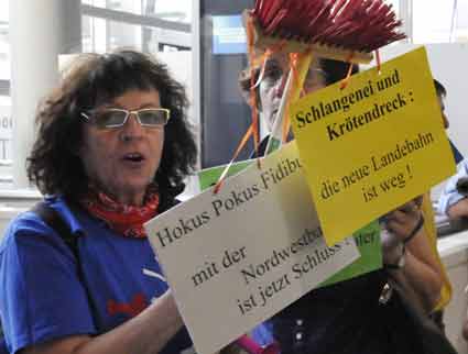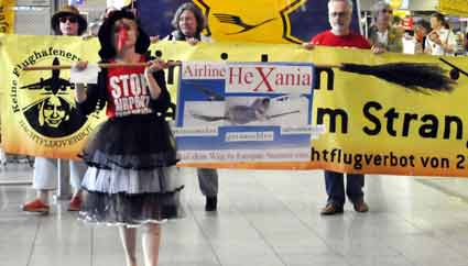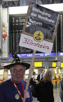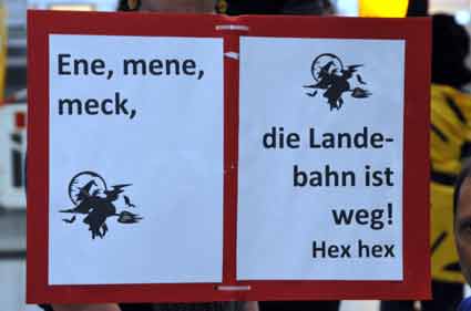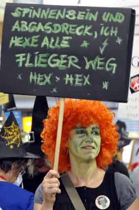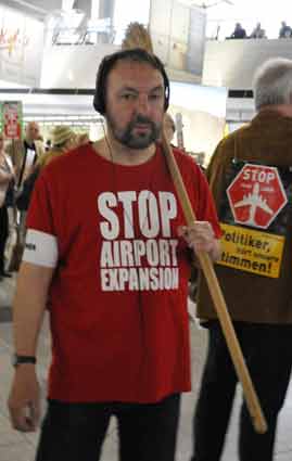 Beim traditionellen Umzug dere Ausbaugegner durchs Terminal flog Mela Krauß mit dem Besen voran ... |