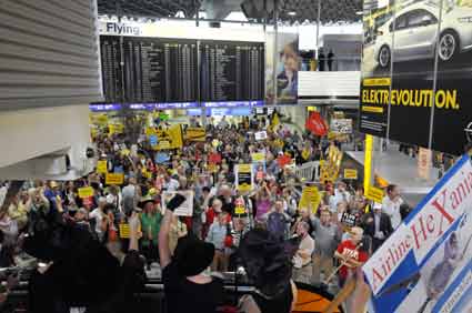 Beim Umzug durchs Terminal wurde klar gemacht: Die Protestbewegung lässt sich nicht auseinander dividieren |
