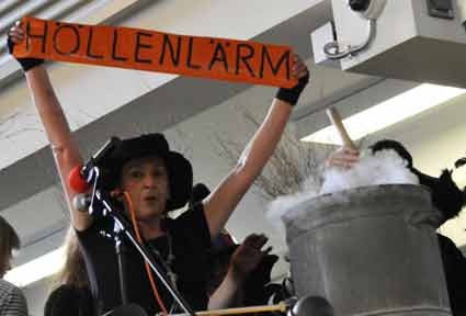 ... und holt das Gericht "Höllenlärm" aus dem Hexenkessel - fast wie im richtigen Leben mit dem Bau der Landebahn Nordwest geschehen. |