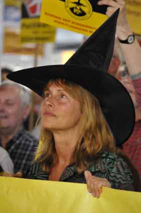 Und Hexen sorgten bei der 21. Montagsdemo mit Spendensammeln schließlich auch dafür, dass der Protest der Flughafenausbau-Gegner weiterhin finanziert werden kann - ganz ohne Hexerei und Sponsoren, sondern aus eigenen Mitteln der Protestierenden |