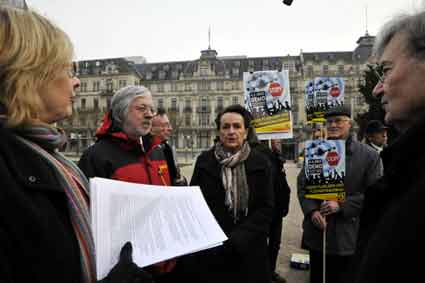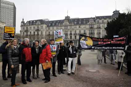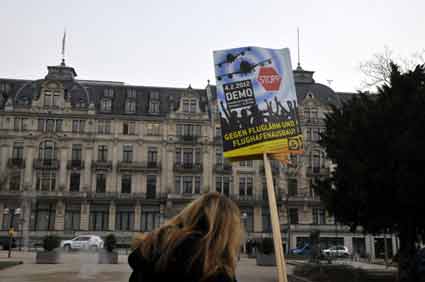 ... als Ergebnis: wir protestieren weiter - Plakat für die Demo gegen Fluglärm und Flughafenausbau am 4.Februar 2012 |