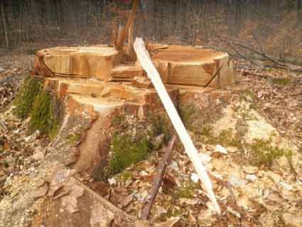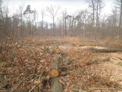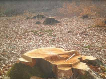 Hier haut man Laubbäume faktisch ersatzlos ab. Die nachwachsenden Bäumchen drohen ,der Sonne schutzlos ausgesetzt, als Niederwald zu enden.