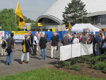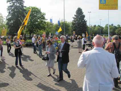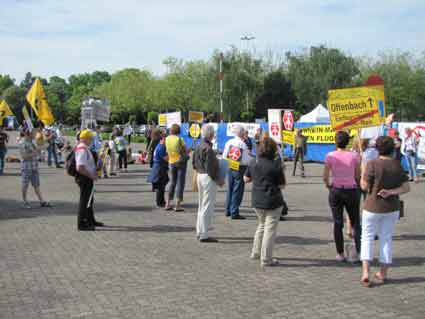 Nur durch ein Spalier von DemonstrantInnen gelangeten die Aktionäre zur jährlichen Hauptversammlung der Fraport AG