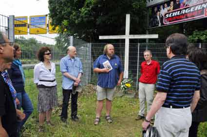 Für die Veranstalter sprachen beim 29. Jahrestag am Gedenkkreuz an der Bundesstraße 43 - auf der Höhe der Commerzbank-Arena - Benno Mayer und Robert Gilcher. Sie wiesen unter anderem auch auf die heutigen Gefahren durch die große Zahl der Flugbewegungen rings um den Rhein-Main-Flughafen hin. Der Absturz an Pfingsten 1983, bei dem sich der kanadische Pilot mit dem Schleudersitz retten konnte, fand statt, während - wie in diesem Jahr auch - das populäre Wäldchesfest und ein großes Tennisturnier nur wenige Meter neben der Absturzstelle tausende von Besuchern anlockte. Sie alle entgingen damals nur knapp einer großen Katastrophe.