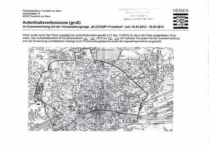 Die Aufenthaltsverbotszone während der Bloccupy-Proteste umfaßte weite Teile von Frankfurt |