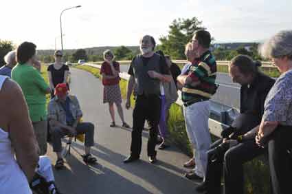 ...informierte Strat Urhahn auf der Brücke an der Wageninger Straße detailiert über aktuelle und noch zu erwartende Belastungen für Mörfelden-Walldorf, das vor allem durch den starken Abflugverkehr auf den Startbahn West leidet. |