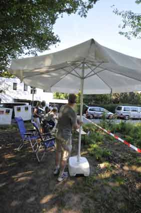 ... ein Sonnenschirm wurde aufgebaut und sorgte für schützenden Schatten an einem heißen Sommertag