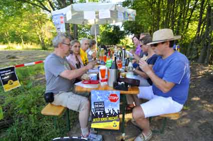 Weil die ursprünglich als Veranstaltungsort auserkorene Wiese - weil Privatbesitz - gesperrt war, fand das Frühstück auf einem kommunalen Waldweg als öffentliche Fläche statt