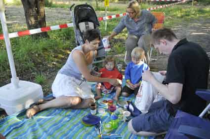 Ordnungsamt und Polizei überzeugten sich , dass den Auflagen entsprechend friedlich gefrühstückt wurde - auch ohne Lärm-Geräusche über 40 Dezibel!