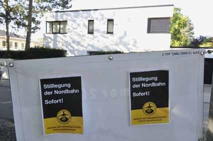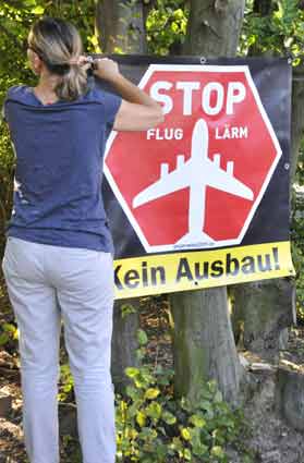 ... und vor allem auch die Plakate mit der Forderung wie nach Stilllegung der Landebahn Nordwest erkennen