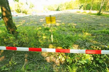Um 9 Uhr wurde auf dem Waldweg vor Schultes Haus aufgetragen ...