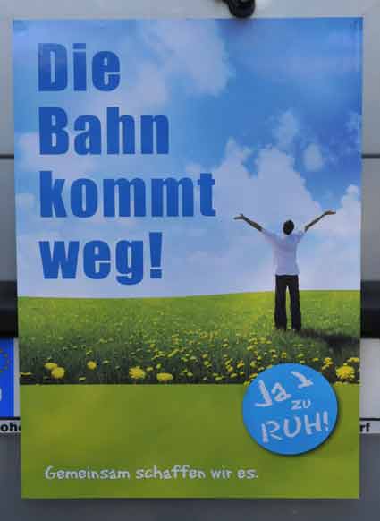 Selbstbewusst nahm ein Plakat sogar schon das Ergebnis der Protestaktionen vorweg: Die Bahn kommt weg!