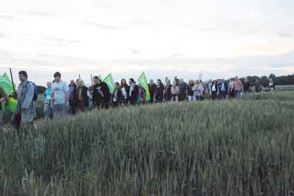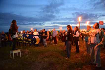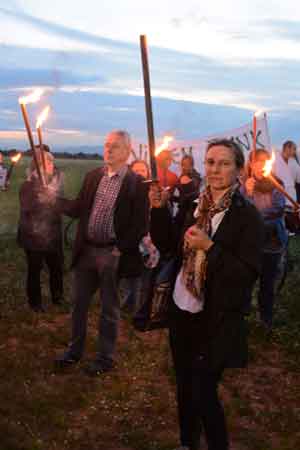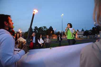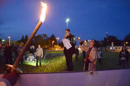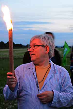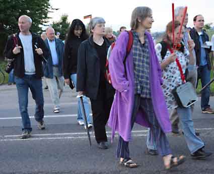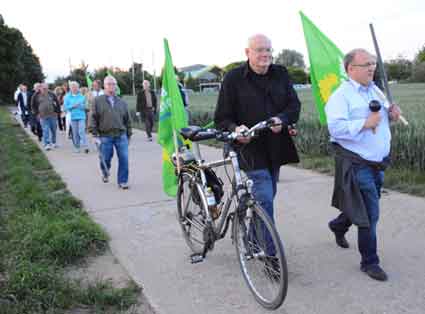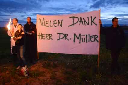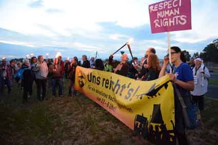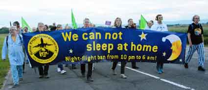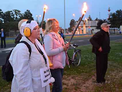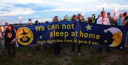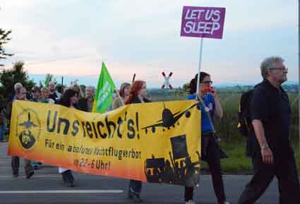 Gegen Fluglärm der besonderen Art, nämlich den des Flugplatzes Wiesbaden-Erbenheim der US-Army, protestierten am späten Mittwochabend etwa 200 Menschen. Aufgerufen hatte dazu der Kreisverband Wiesbaden von Bündnis 90 /Die Grünen in Zusammenarbeit mit der Bürgerintiative Wiesbaden, unterstützt außerdem von Politiker aus den Reihen der SPD und der Piraten. Sie protestierten, weil dieser spezielle Lärm à la Erbenheim - zu Tages- und auch in vielen Nachtstunden - noch zu dem ohnehin großen Fluglärm durch den Rhein-Main-Flughafen hinzu komme. Die Protestierenden zogen vom Mittelpfad aus vor das von Heidelberg nach Erbenheim verlegte Hauptquartier der US-Army, wo gegen 22 Uhr eine Kundgebung begann. Mit Plakaten, Sprechchören und Fackeln verlangten die Protestierenden ein schnelle Verbesserun der Lage und kritisierten einen Teil der Wiesbadener Kommunalpolitiker, weil die nicht im Vorfeld der Verlegung der US-Army nach Erbenheim auf eine Lärmreduzierung geachtet, sondern alles schön geredet hätten. Einige Teilnehmer erschienen, ergänzend zu dem Plakat "Wir können nicht schlafen" und der Forderung nach Nachtruhe von 22 bis 6 Uhr, demonstrativ in Nachthemden und Schlafanzügen.Gefährlich sei dieser Flugbetrieb darüber hinaus, weil Hubschrauberflüge teilweise auch in der Nähe eines Industriegebietes mit störfallverordneten Unternehmen stattfinde.
