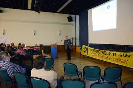 Thomas Winkler, Stadtrat in Mörfelden-Walldorf, informierte über die Pläne für ein Terminal 3 und die damit zu erwartenden zusätzlichen Belastungen und Rodungen