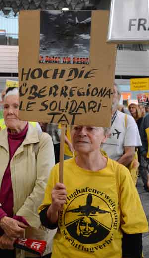 Nicht von ungefähr führte das Plakat gegen das geplante Terminal 3 den traditionellen Protestzug am Mpntagabend an