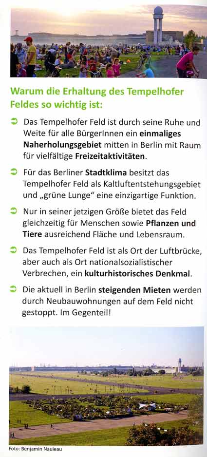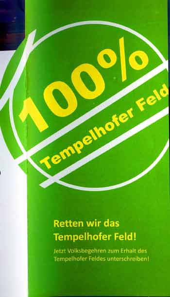 In Tempelhof geht es in die entscheidende Phase Das Volksbegehren zum 100prozentigen Erhalt des Tempelhofer Feldes, ein ehemaliger und stillgelegter Flughafen in Berlin, geht zum Jahresende in die entscheidende Phase.