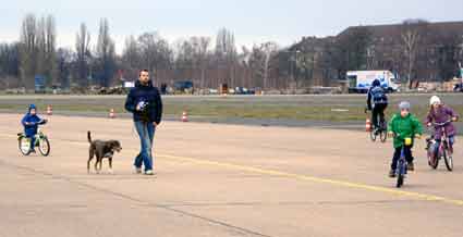 Groß und klein, aber sogar Vierbeiner hatten an den vergangenen Feiertagen Spaß an einem Spaziergang auf dem Tempelhofer Feld