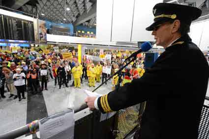 | Protest am Rosenmontags 2014 - Demonstrationszug durchs Terminal. Aber auch nach Aschermittwoch wird demonstriert, nächsten Montag, gleicher Ort, gleiche Zeit |