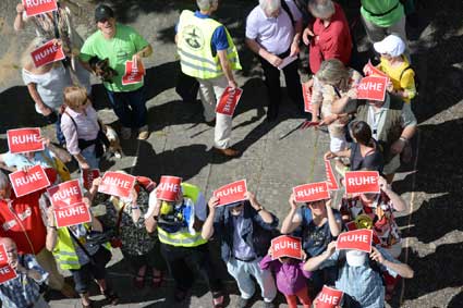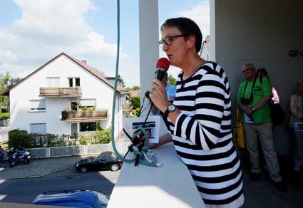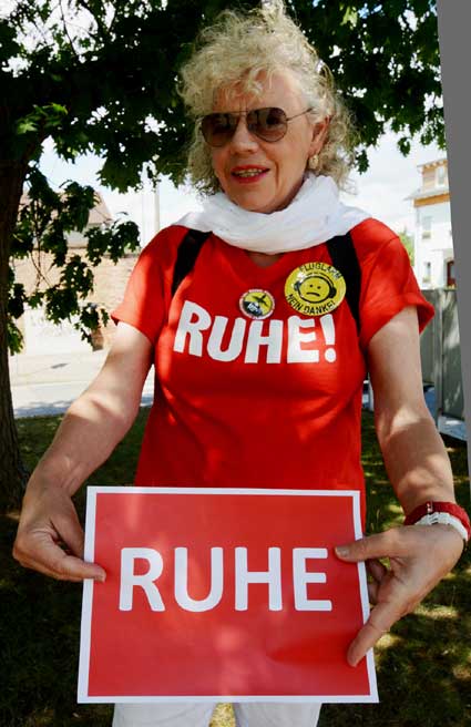 Dr. Ursula Fechter zeigte eines der “Ruhe”-Schilder, die bei der weiteren Aktion eine wichtige Rolle spielten