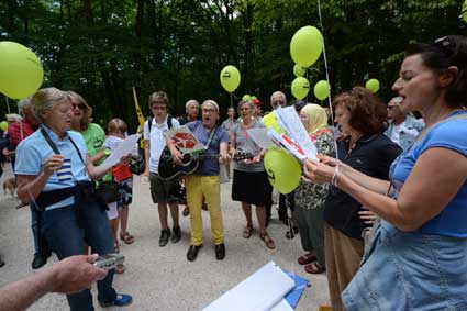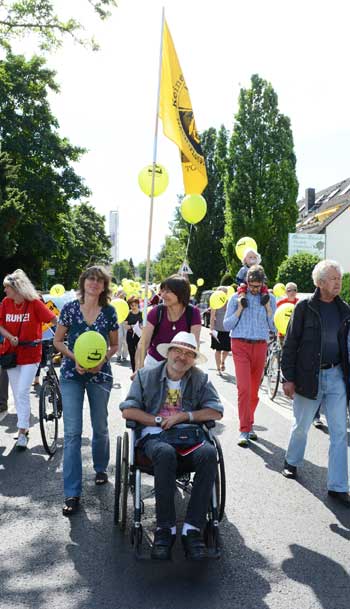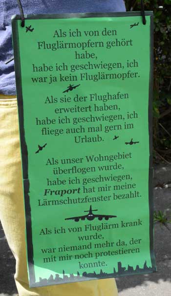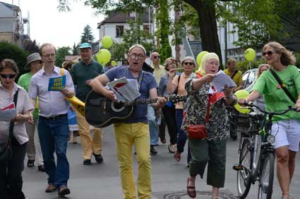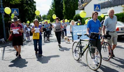 Ihre Empfehlung beherzigten die Teilnehmer des Lärmspazierganges nicht, sondern hielten es mit dem Slogan: “Bleib' im Land und wehr' dich redlich!”